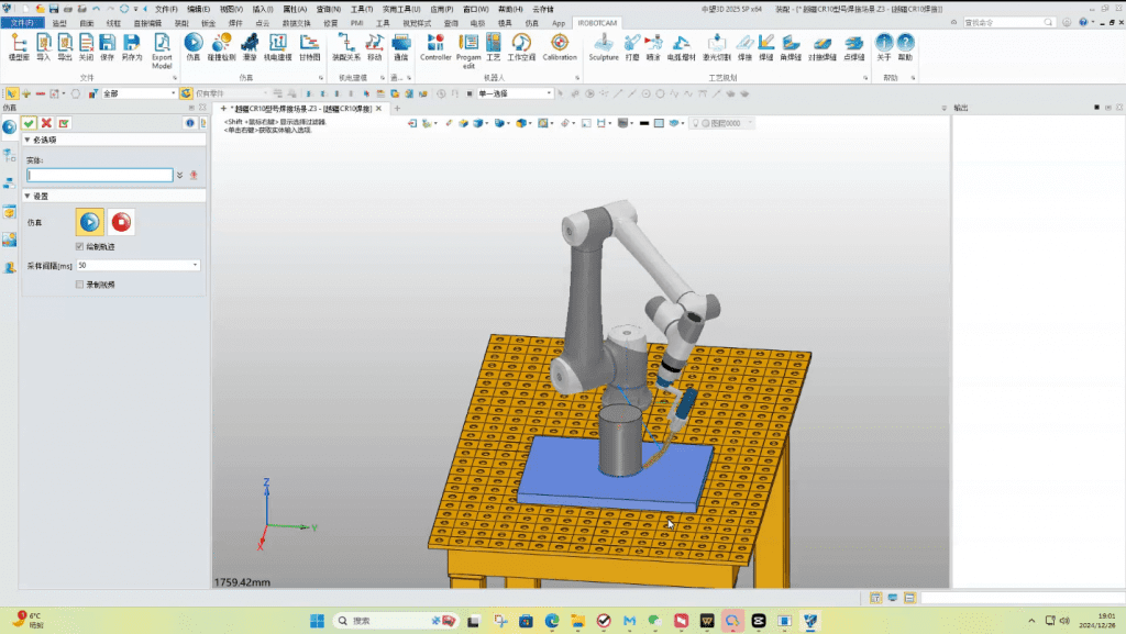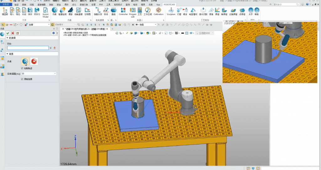 6. 针对机器人应用场景,利用iRobotCAM,可以对机器人的整体焊接场景进行仿真,直观的查看焊接的过程。