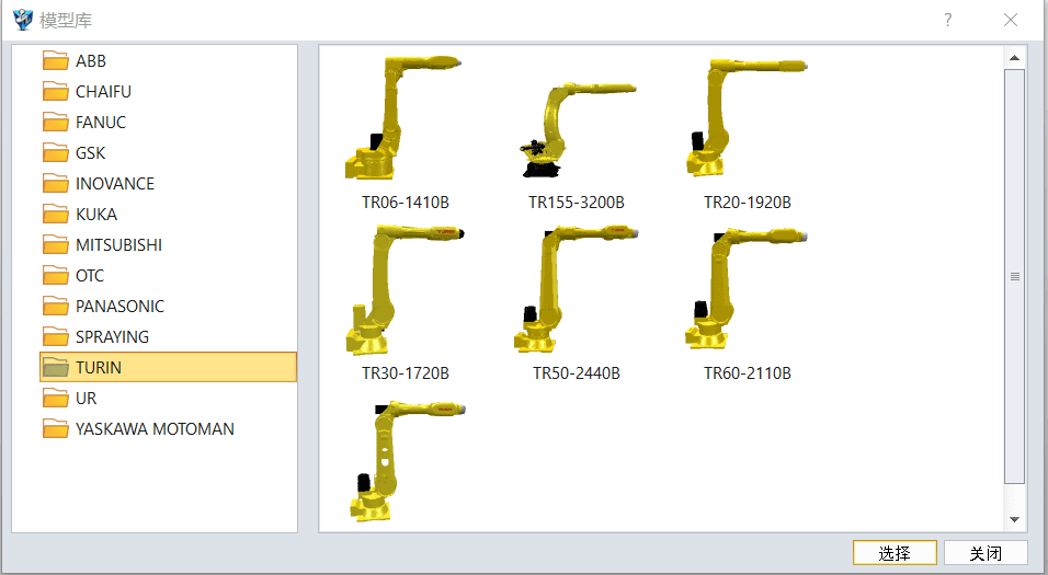 - 利用iRobotCAM的机器人库,可以利用现有的ABB, 采埃孚,发那科,广州数控,汇川,Kuka, 三菱,松下,智绘,图灵,UR,安川等机器人库,或根据需要,快速的建立新增的如越疆机器人等协作机器人库。通过简单的关节定义即可实现库的建立。